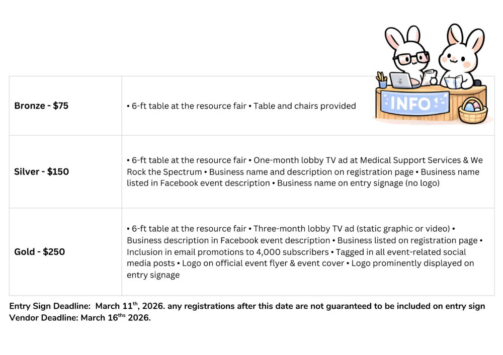 New this year, the All-Abilities Resource Fair will bring together local businesses and organizations that support children and families in the disability community. Attendees will have the opportunity to connect with community partners, learn about local resources, and explore services available in the area.